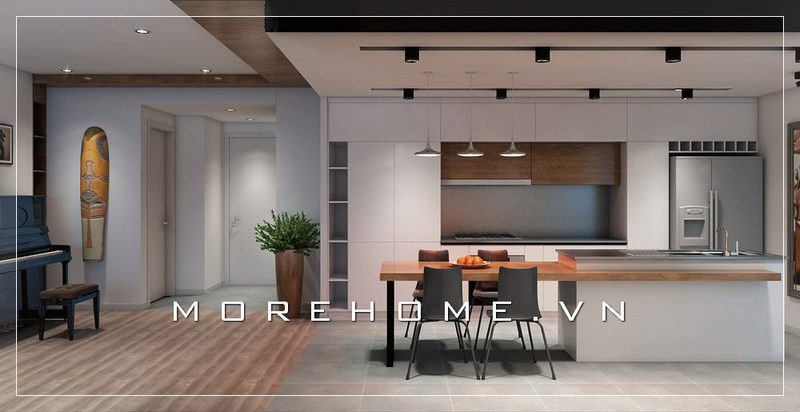 Thiết kế nội thất phòng bếp chung cư hiện đại, đơn giản và tiện nghi