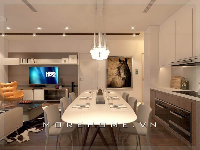 Thiết kế nội thất phòng ăn cạnh bếp đơn giản, hiện đại và tiện nghi cho nhà chung cư