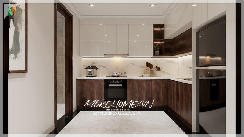 Để thiết kế một phòng bếp nhỏ gọn phù hợp với chung cư, nhà phố có phong cách hiện đại, cần có một sự kết hợp hài hòa giữa các yếu tố thiết kế, vật liệu và màu sắc.