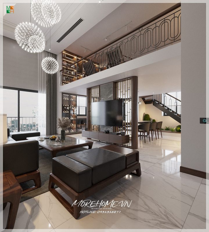 Đề nghị thiết kế phòng khách có sự kết hợp giữa vẻ đẹp sang trọng của gỗ óc chó và phong cách hiện đại cao cấp dành cho các căn hộ, nhà phố và biệt thự.