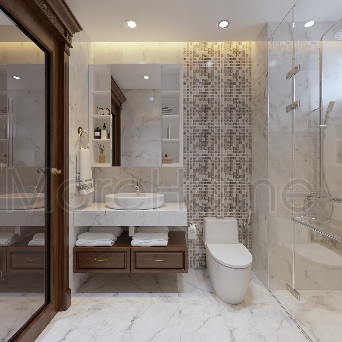 Bàn bếp được ốp đá grante màu trắng tạo sự thanh thoát cho không gian bếp. Bộ bàn bếp, ốp bếp sử dụng đá nhân tạo để tôn nên khoongg ian thật ấm cúng, hạnh phúc và sự thành đạt của gia đình.